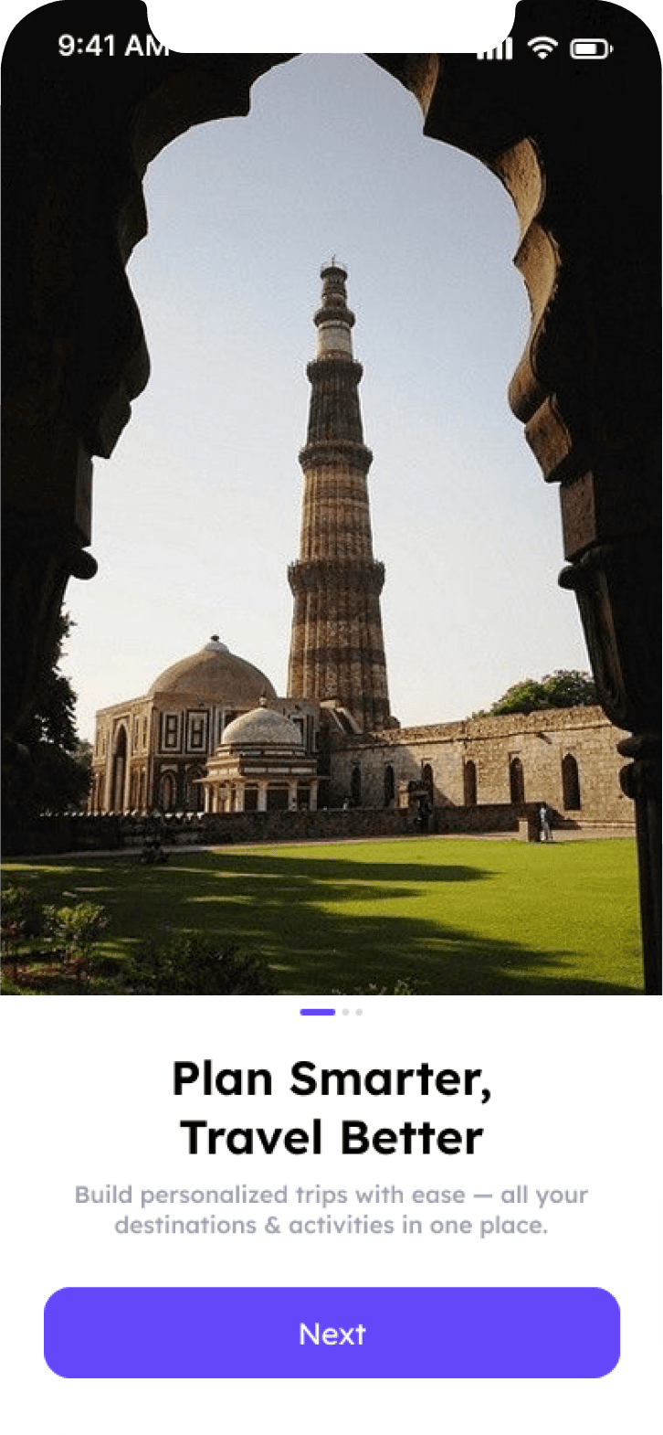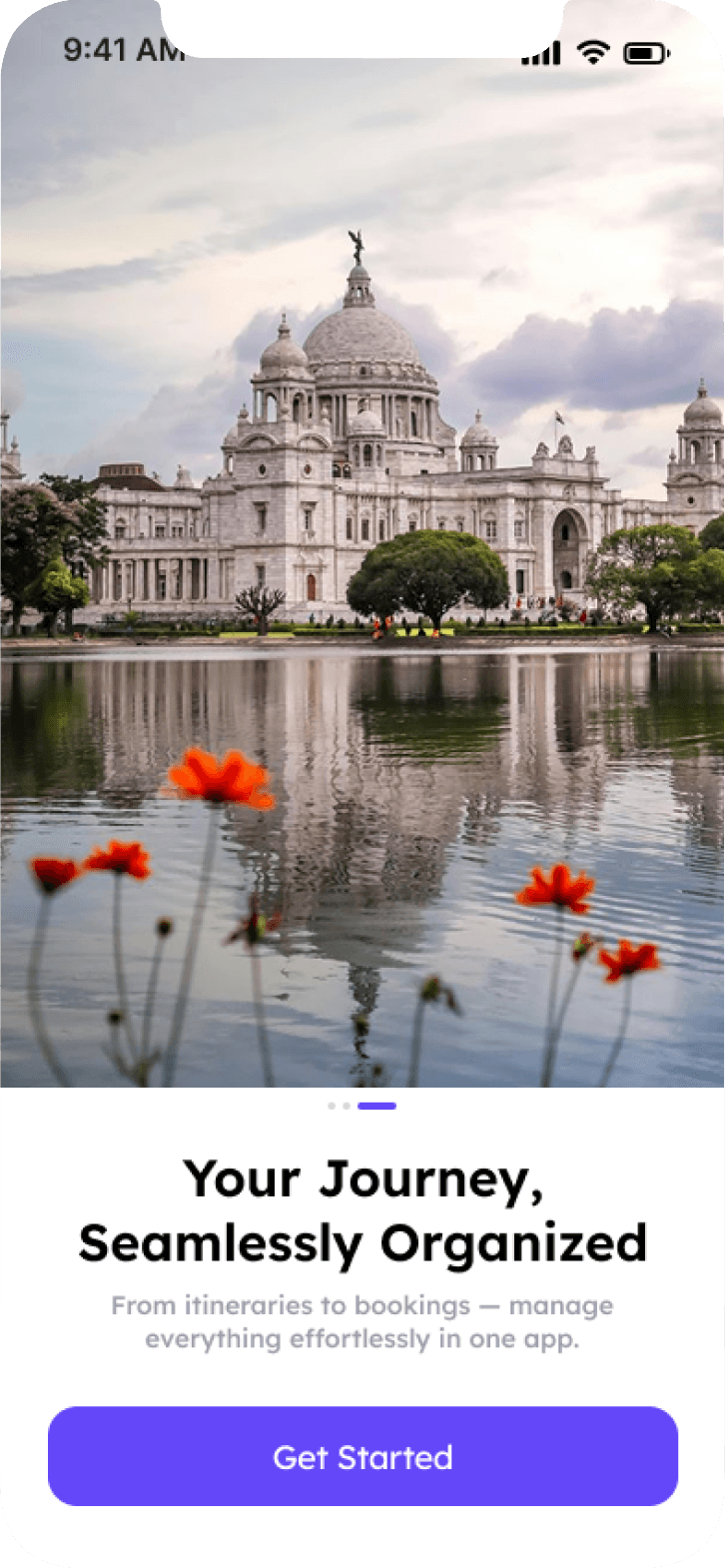 The project followed a user-centered design approach, beginning with secondary research to understand travel trends and planning behaviors, followed by primary research through surveys and interviews to uncover real user pain points. Insights were synthesized using affinity mapping, empathy mapping, and personas to define user needs and opportunities. These insights informed information architecture, user flows, wireframes, and visual design decisions, leading to a cohesive and purposeful product experience.